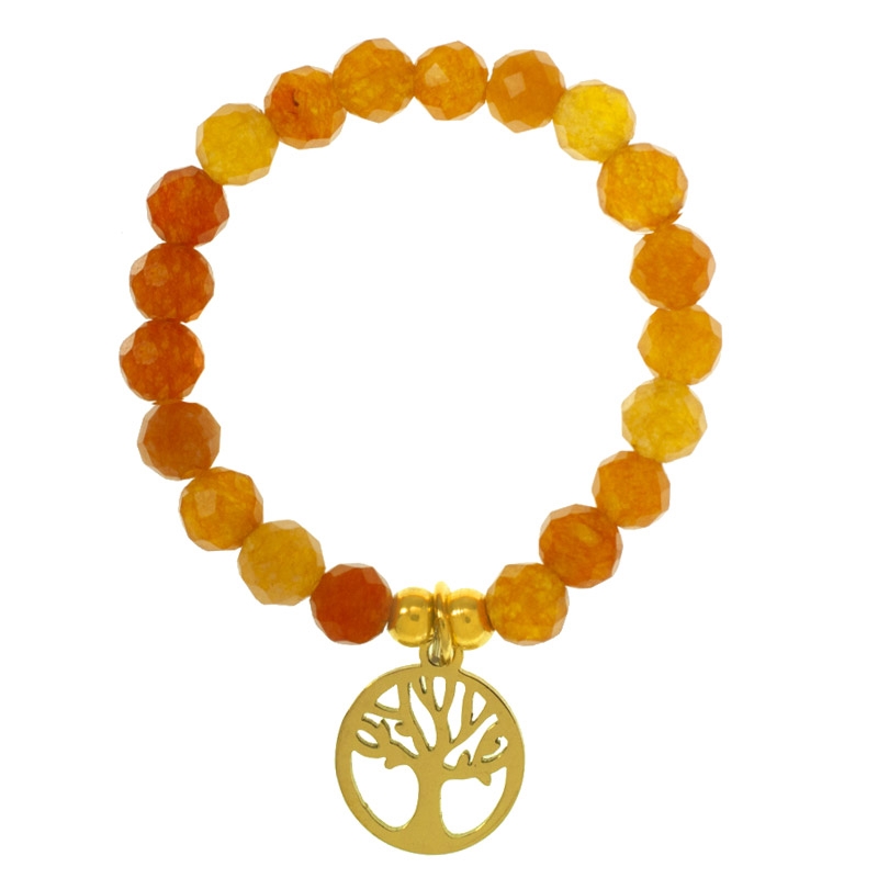 Anillo elástico de piedras facetadas con colgante de acero dorado.
