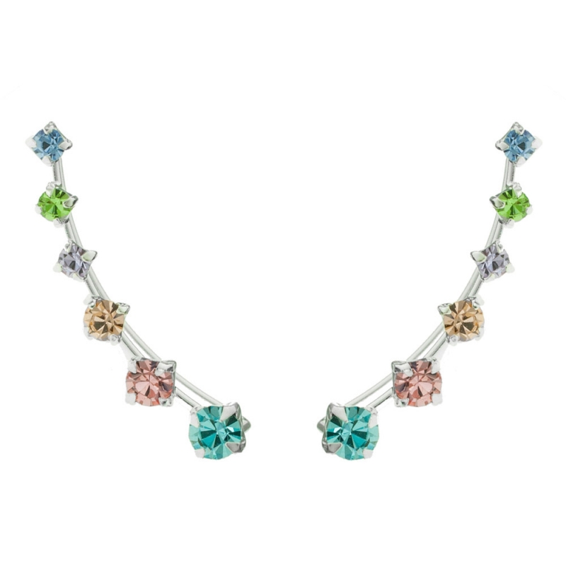 Pendientes trepadores con circonitas de colores fabricados en Plata de 1ª Ley 925.