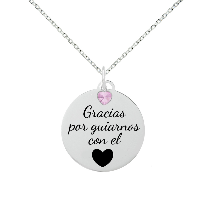Colgante para Catequista con mensaje "Gracias por guiarnos con el corazón" fabricado en Plata de Ley