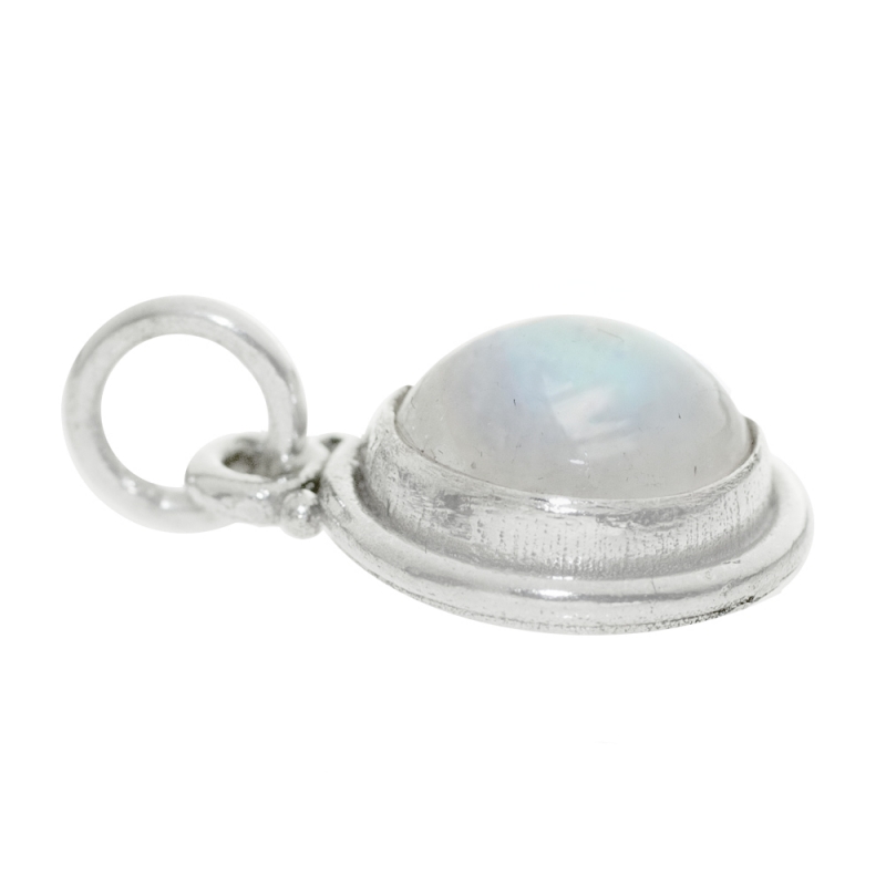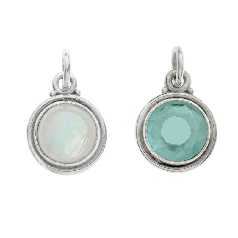 Colgante piedra natural redonda con base de Plata de Ley. Disponible en piedra de luna y aguamarina.