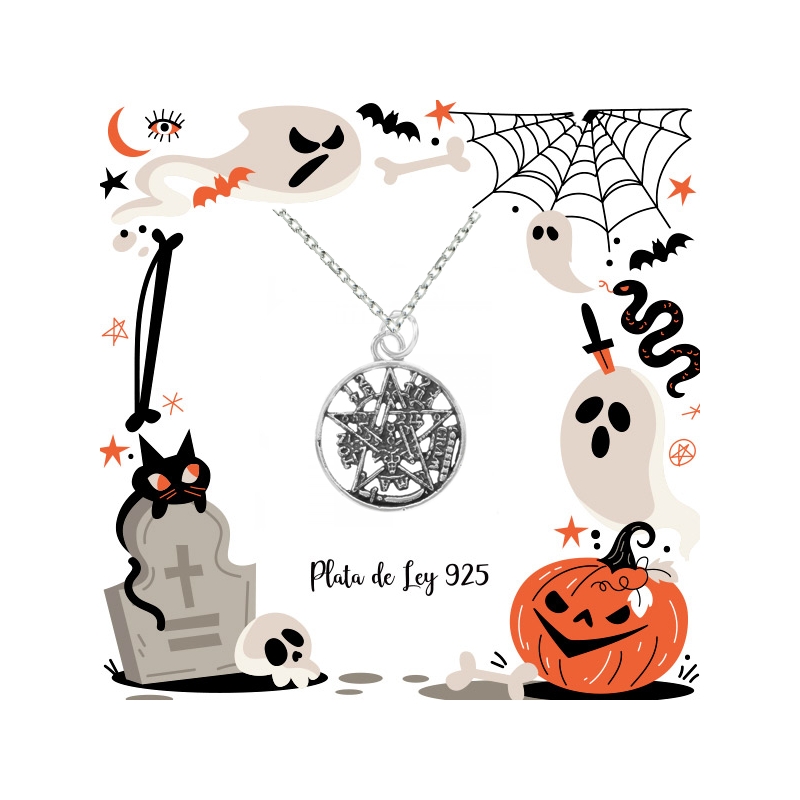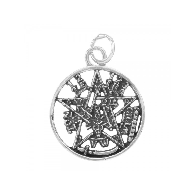 Colgante tetragramatón fabricado en de Plata de Ley 925 con acabado envejecido. Incluye cadena de 45 cm.