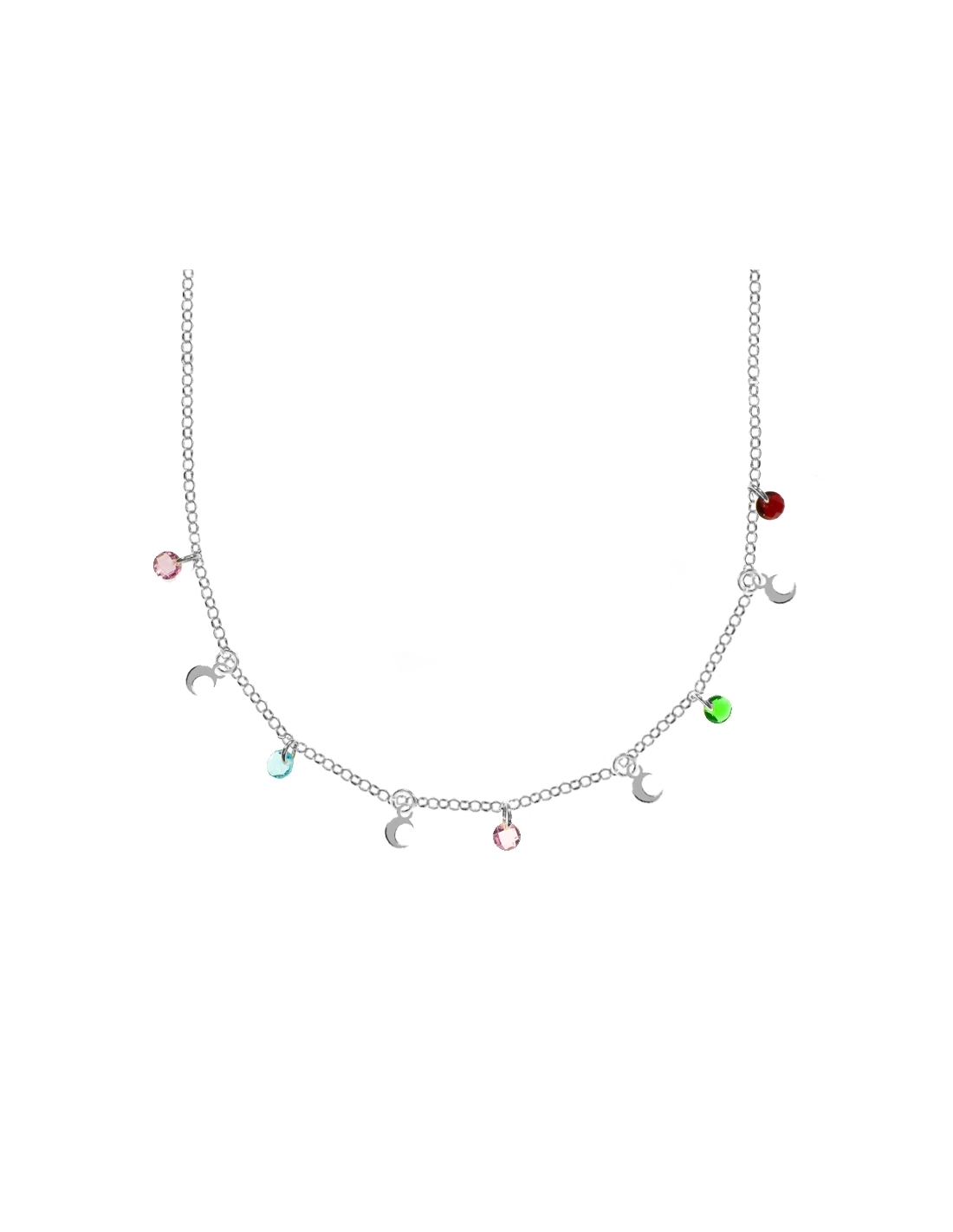 Collar con lunas y Swarovski Plata de Ley