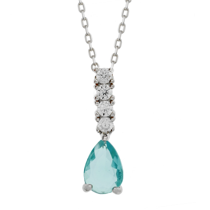 Collar gota de cristal azul fabricado en Plata de Ley 925. Disponible con baño de Oro.