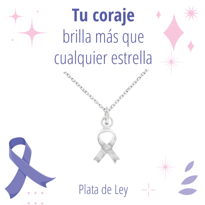 Collar con colgante lazo símbolo de la lucha contra el cáncer fabricado en Plata de 1ª Ley