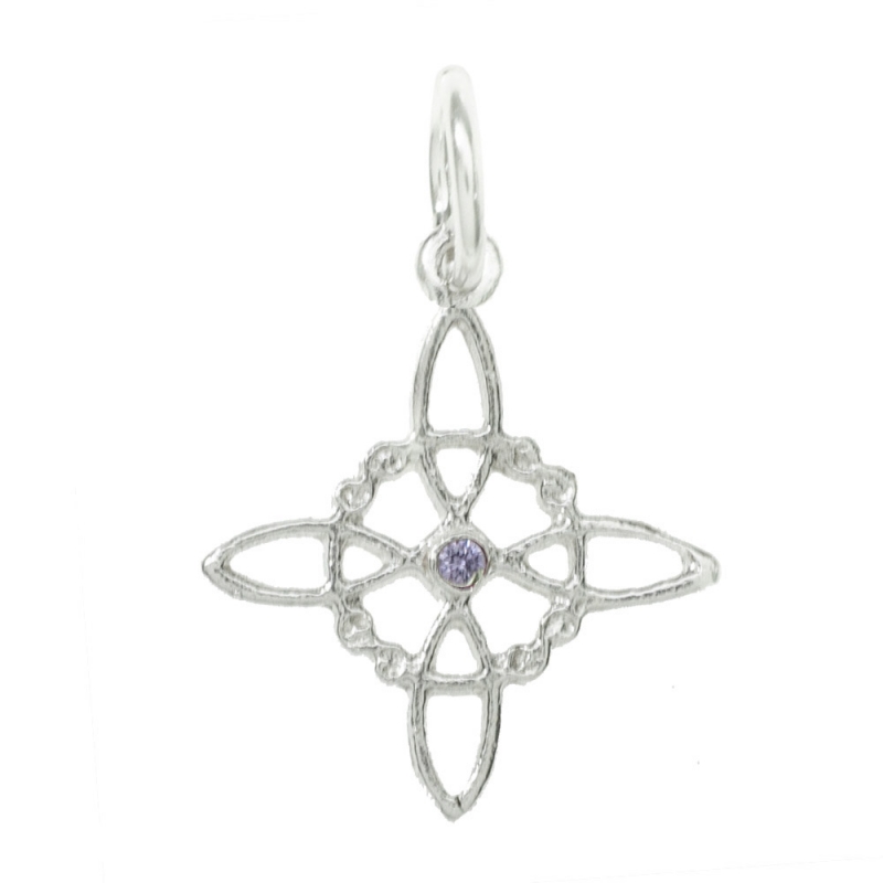 Collar amuleto nudo de bruja para signos de aire con centro de cristal malva fabricado en Plata de Ley 925 con cadena incluida.