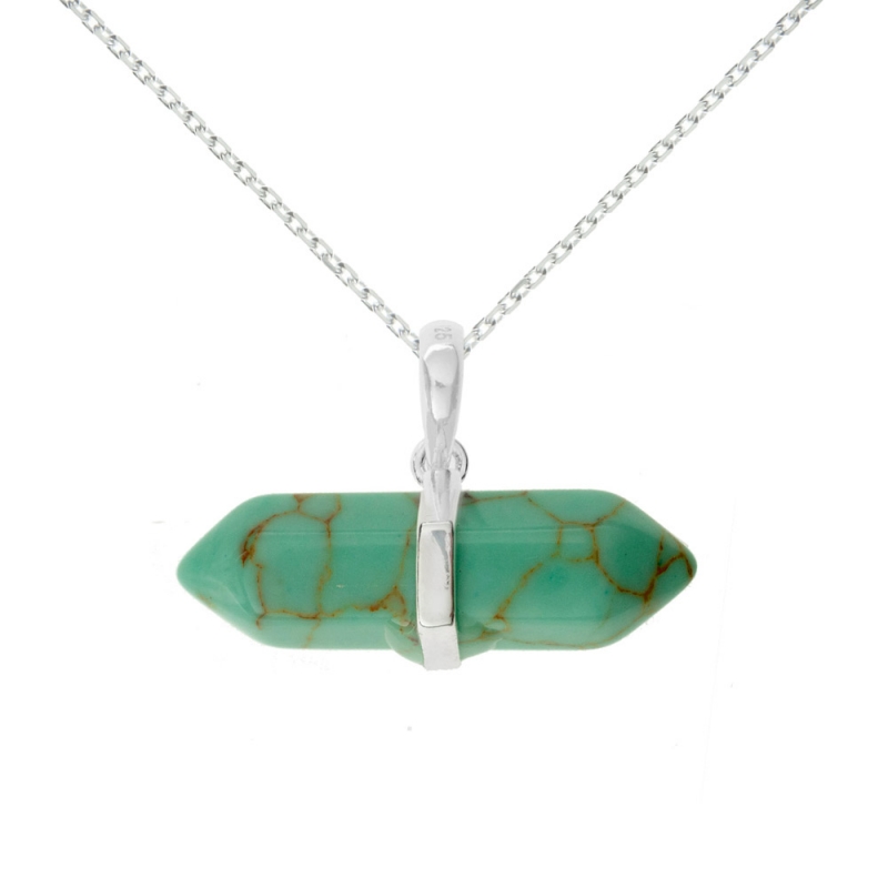 Collar punta de turquesa fabricada en Plata de 1ª Ley 925 con cadena de 45 cm.