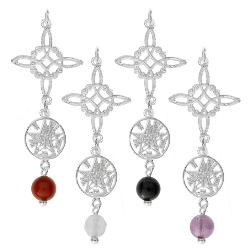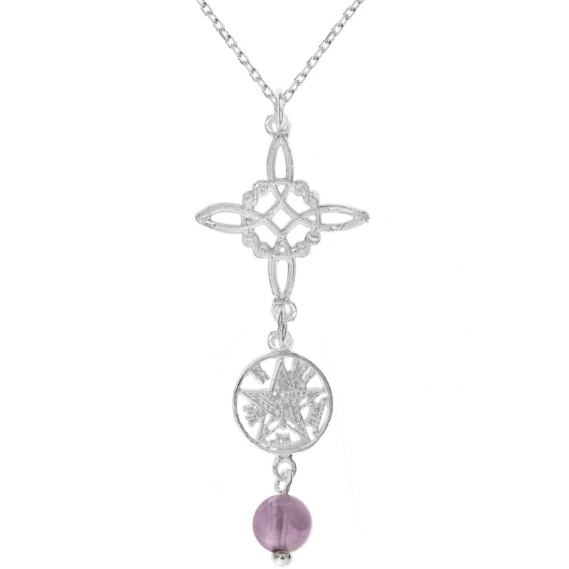 Doble amuleto Nudo de Bruja & Tetragrámaton con piedra natural fabricado en Plata de 1ª Ley 925. Cadena incluida.