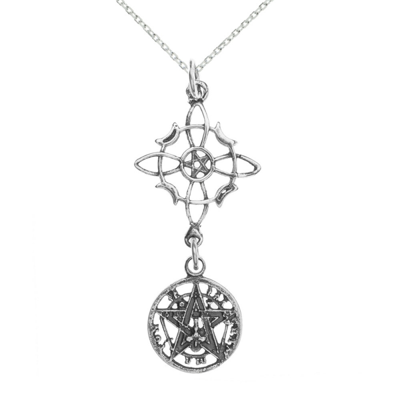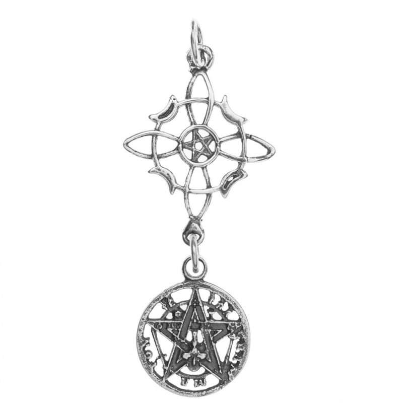 Colgante amuleto de doble protección con Nudo de Bruja & Tetragrámaton de Plata de 1ª Ley 925.