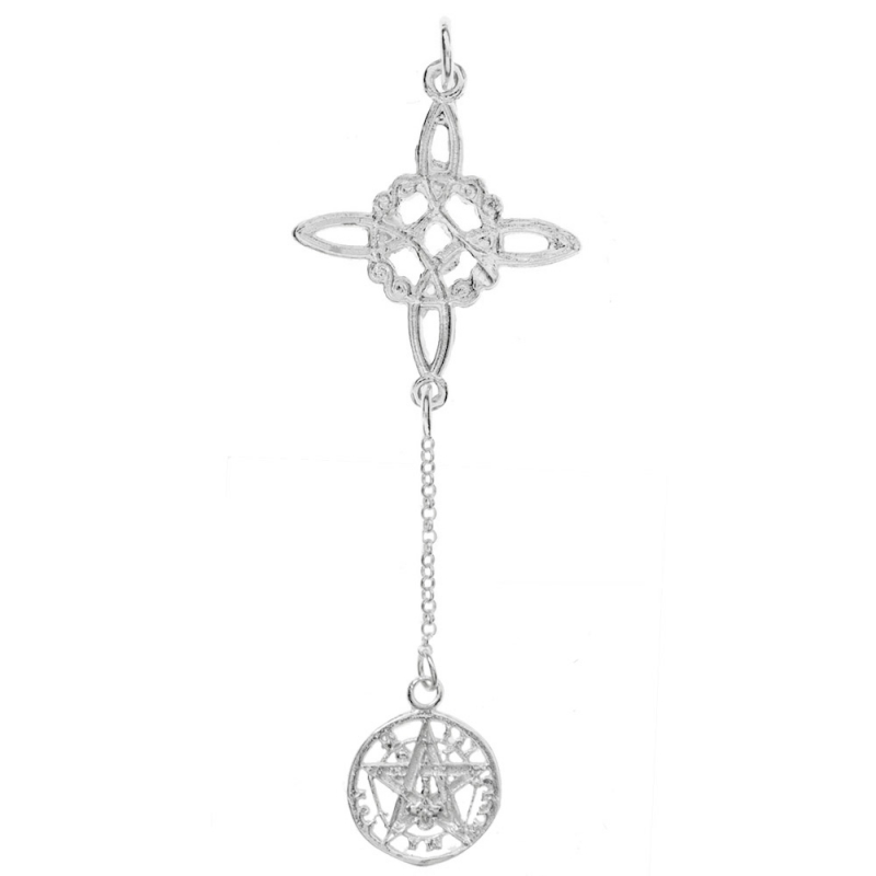 Doble amuleto Nudo de Bruja & Tetragrámaton efecto colgante corbatero fabricado en Plata de Ley. Incluye cadena de 45 cm. de Plata de Ley.