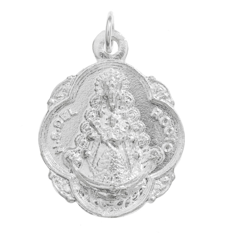 Medalla de la Virgen del Rocío fabricada en Plata de 1ª Ley 925 con cadena de 45 cm.