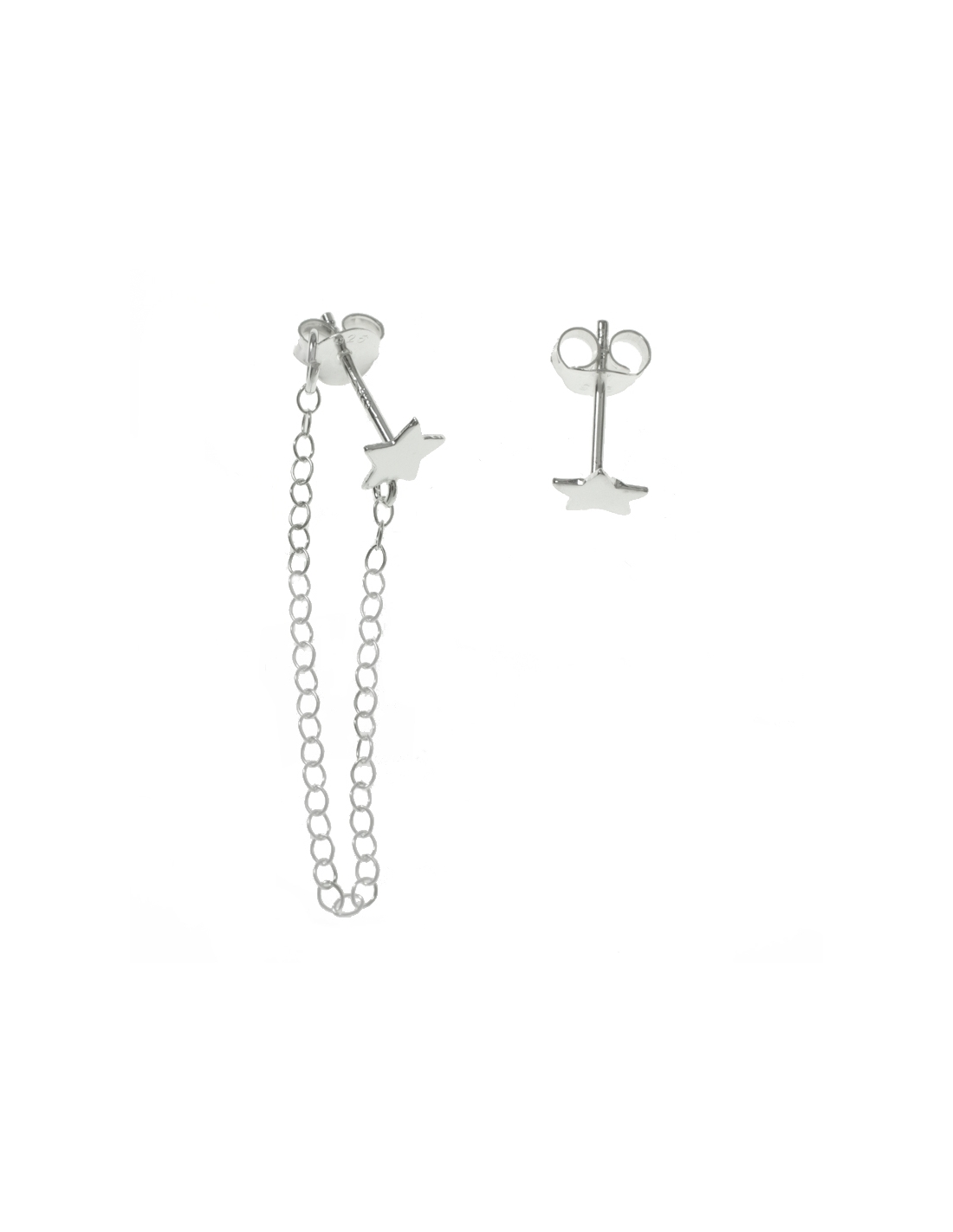 Pendientes asimétricos con uno sencillo y otro con cadena fabricados en Plata de Ley.