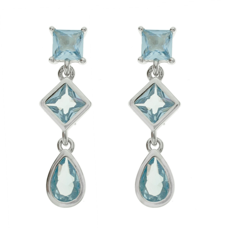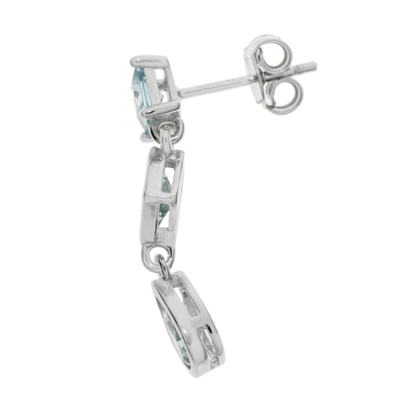 Pendientes largos circonitas color azul fabricados en Plata de Ley con cierre mariposa