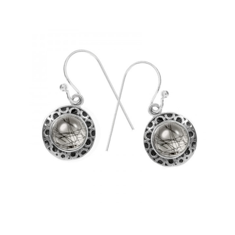 Pendientes largos con piedra mil círculos Plata de Ley