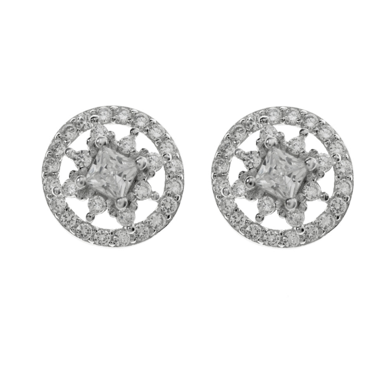 Pendientes con circonitas Pendientes flor con circonitas Jade 51335 14,90 € Pendientes flor con circonitas fabricados en Plata de Ley Diámetro 9 mm Comprar