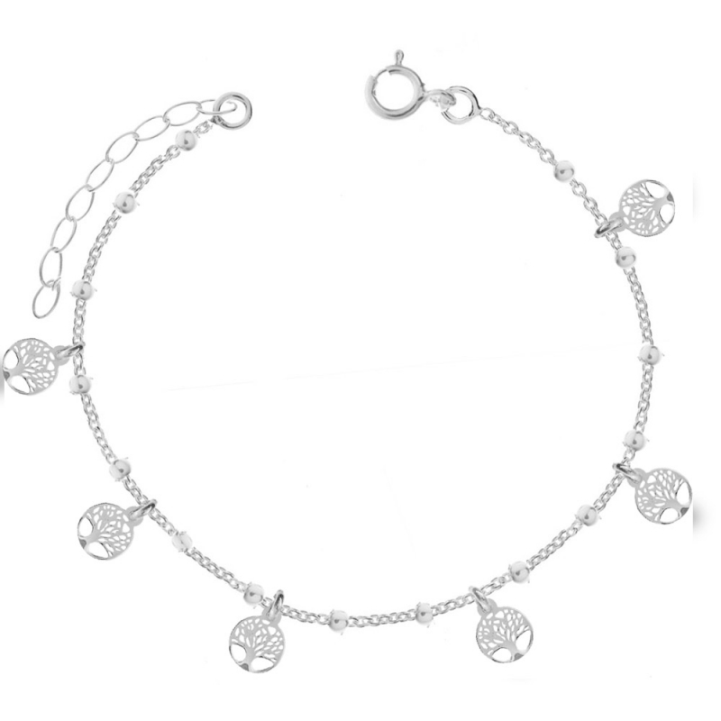 Pulsera con cadena de bolitas intercaladas y colgantes diseño árbol de la vida fabricada en Plata de 1ª Ley 925.