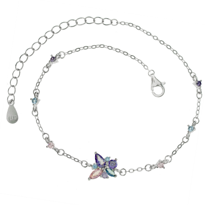 Pulsera con cristales de colores fabricada en Plata de Ley con circonitas blancas.