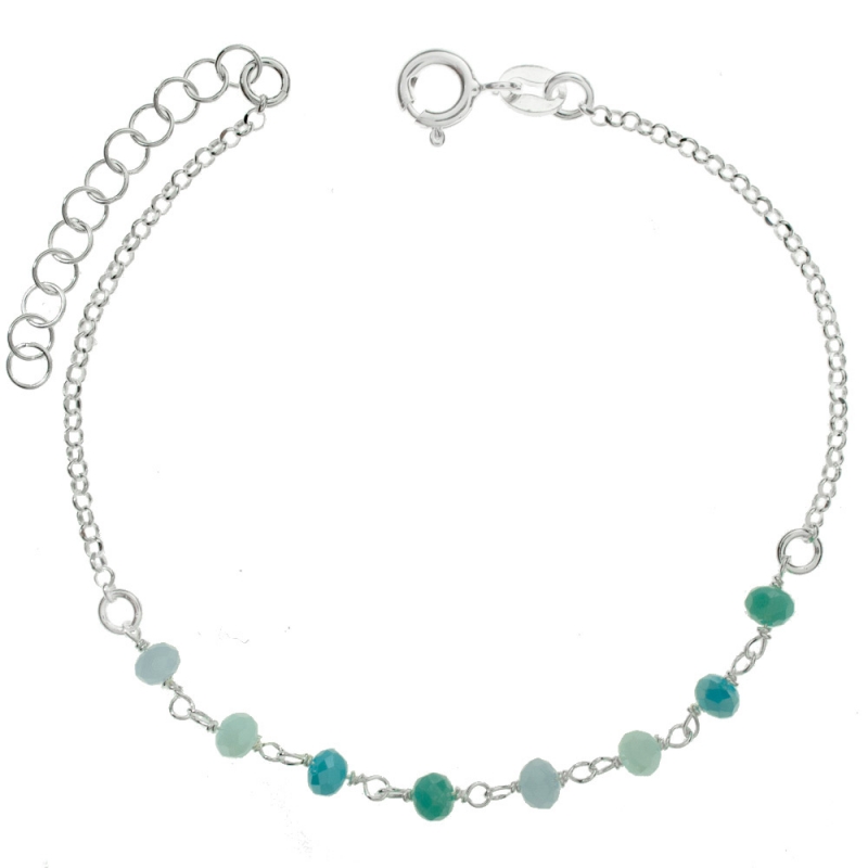 Pulsera con cristales facetados tonos azules fabricada en Plata de 1ª Ley 925. Cadena roló y largo ajustable