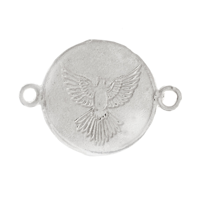 Pulsera giratoria diseño Virgen del rocío y por detrás paloma de la paz de Plata de Ley