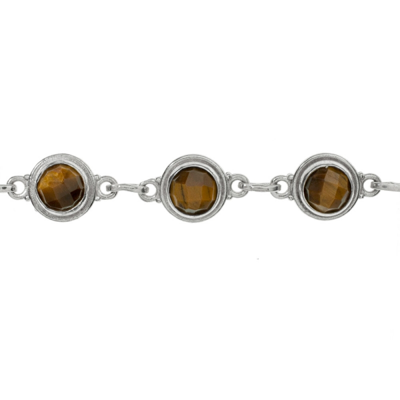 Pulsera eslabón redondo con piedra natural ojo de tigre fabricada en Plata de 1ª Ley 925.