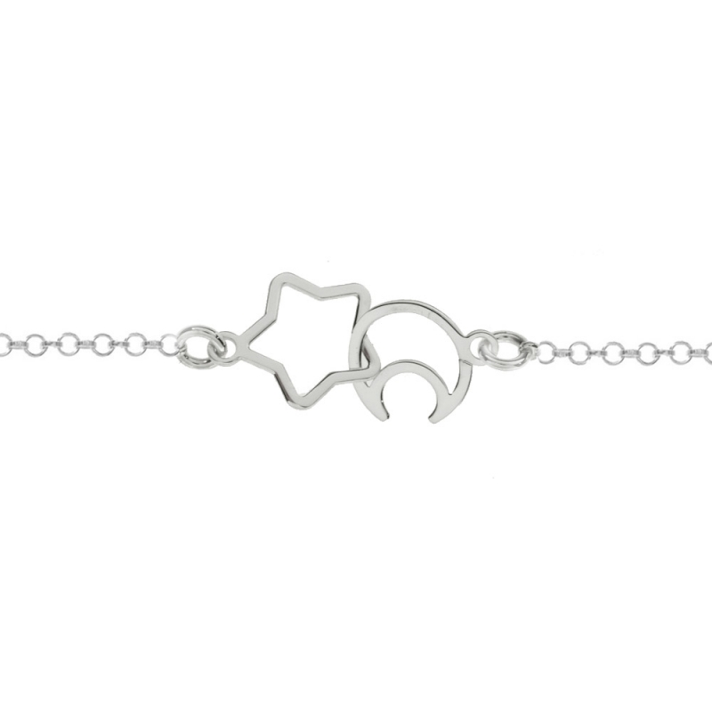Pulsera ajustable con luna y estrella entrelazadas fabricada en Plata de 1ª Ley 925.