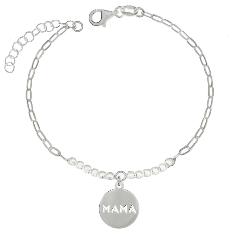 Pulsera Mamá con circonitas blancas y colgante fabricada en Plata de Ley.