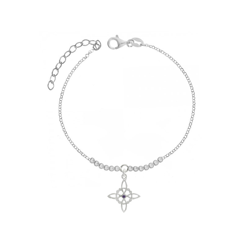 Pulsera amuleto con nudo de bruja de Plata de 1ª Ley 925 y cristales con largo ajustable.