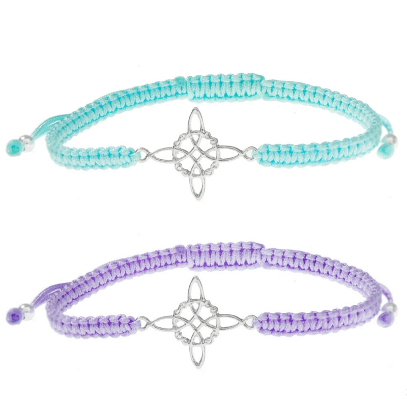 Pulsera ajustable amuleto de protección con Nudo de Bruja fabricada en Plata de 1ª Ley 925 y macramé.