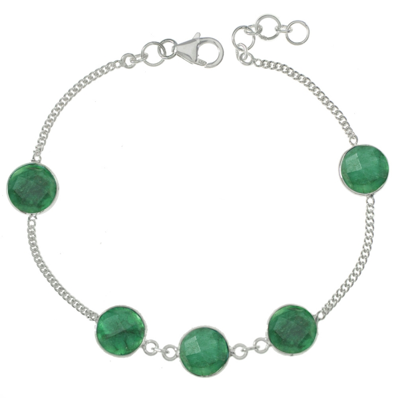 Pulsera ajustable con 5 eslabones redondos de piedra esmeralda facetada fabricada en Plata de Ley