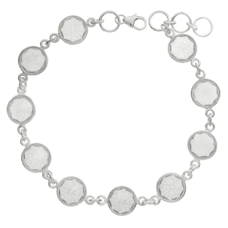 Preciosa pulsera con eslabones de cristal Rivoli blanco de gran tamaño fabricada en Plata de 1ª Ley 925.
