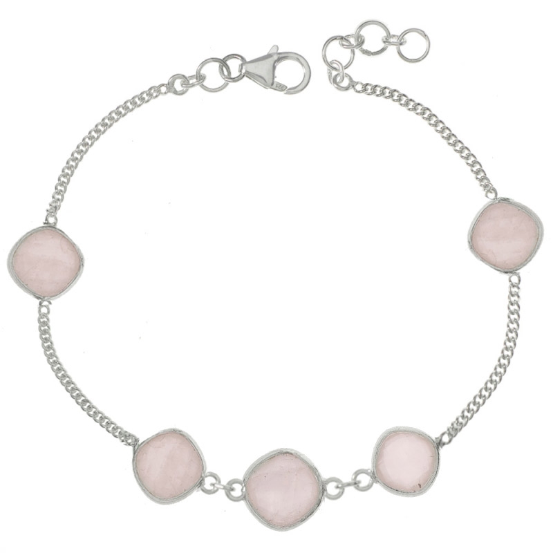 Pulsera ajustable con rombos de cuarzo rosa fabricada en Plata de 1ª Ley 925.