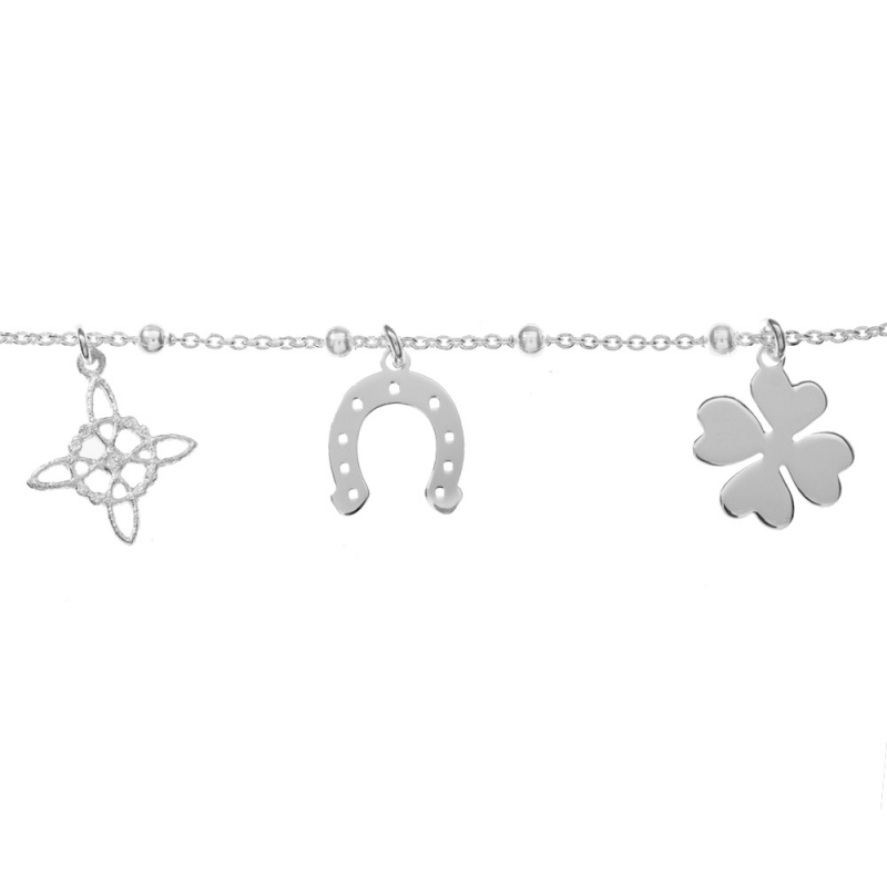 Pulsera amuleto con símbolos de la Suerte colgantes fabricada en Plata de 1ª Ley 925.