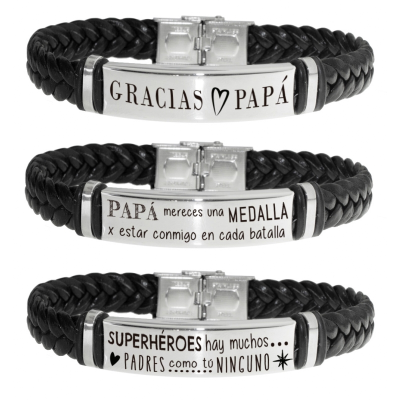 Pulsera trenzada de cuero vegano y acero inoxidable con mensaje especial día del Padre.