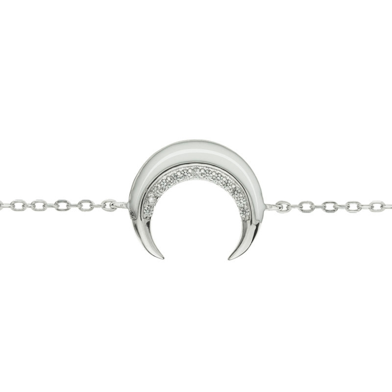 Pulsera ajustable diseño luna esmalte blanco con circonitas fabricada en Plata de Ley 925